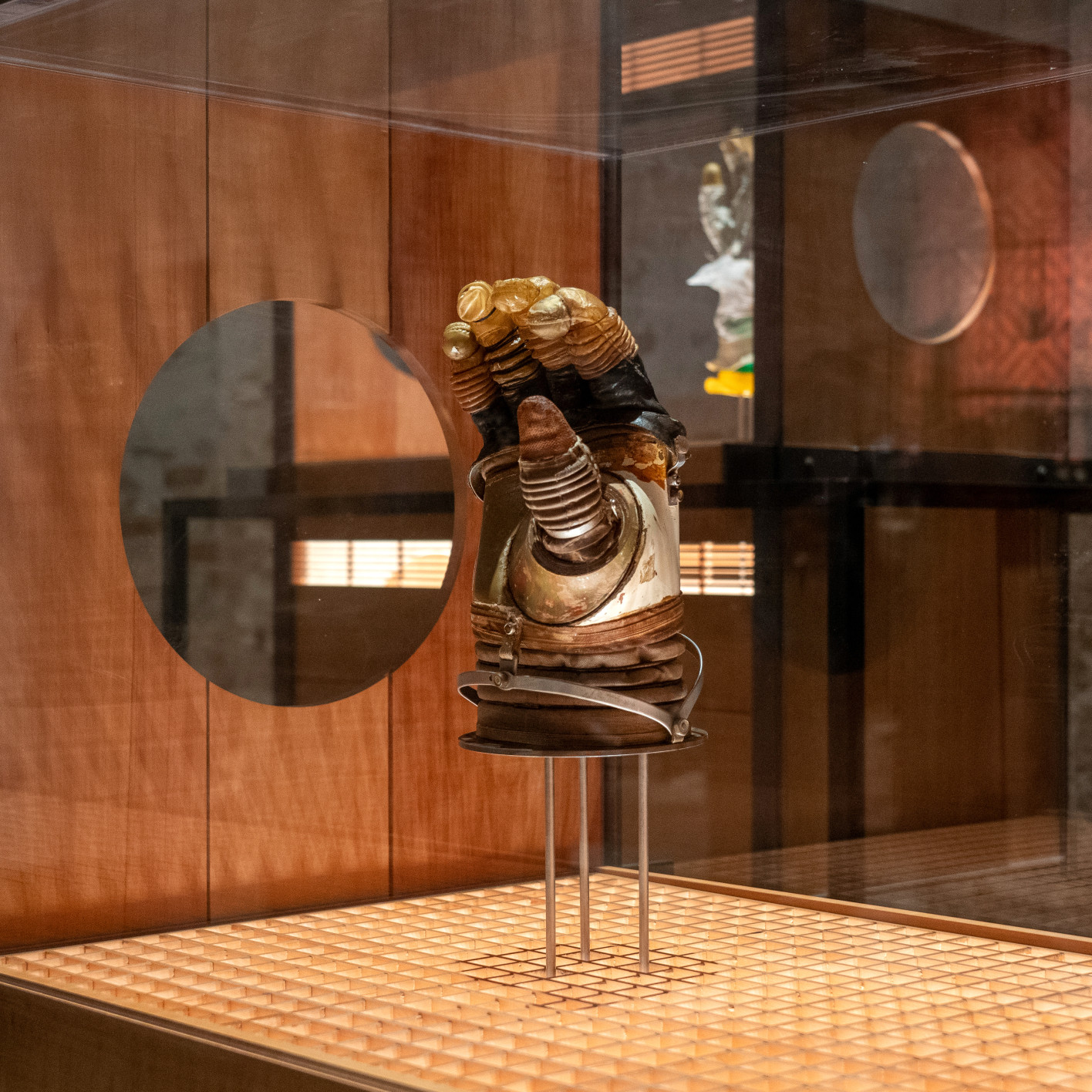 For the 2021 Venice Biennale, modem presents fragments of spacesuit history within objects that are also environments. Cross-hatching the language of reliquary and care, they are an apparatus of protection as much as of display.